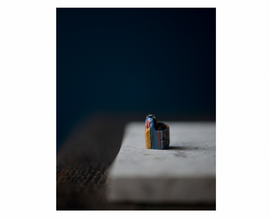 エジプトでガラス製作が発展し始めた当初、ガラスは宝石と同等の価値をもつとされており、その名残を思わせる鮮やかな色彩が特徴です。青はナイル川や生命、黄は太陽や神聖さ、赤は砂漠や混沌を象徴するとされることが多く、それぞれの色には象徴的な意味が込められています。棒状のガラスを金太郎飴状にカットして装飾に用いていたため、このような形状のまま残る例は非常に珍しいです。加えて、風化がほとんど見られない点も、本作の大きな魅力といえるでしょう。