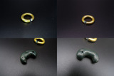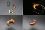 かわいい勾玉と金環の3点セットです。瑪瑙は小振りですが、適度な透明感と赤味のバランスがよく、ライトに透かすと綺麗です。金環は厚みが最大で5ミリ程度ですが、とても金色がいいです。出雲石は・・・可もなく不可もなく、普通です(笑)