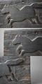 反対側の面には何となく小さいからかもしれませんが、仔馬が二頭、これも疾走しているような様子。特に向かって右側の比較的大きな方は頭を上に向けて欣喜雀躍とでもいったような風情が感じられます。