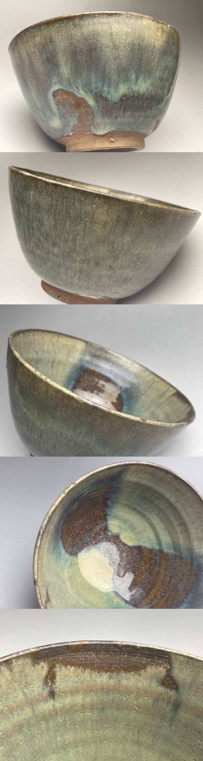 内側は右と左から釉が見込に向かって流れ、荒波のような景色を作っています。