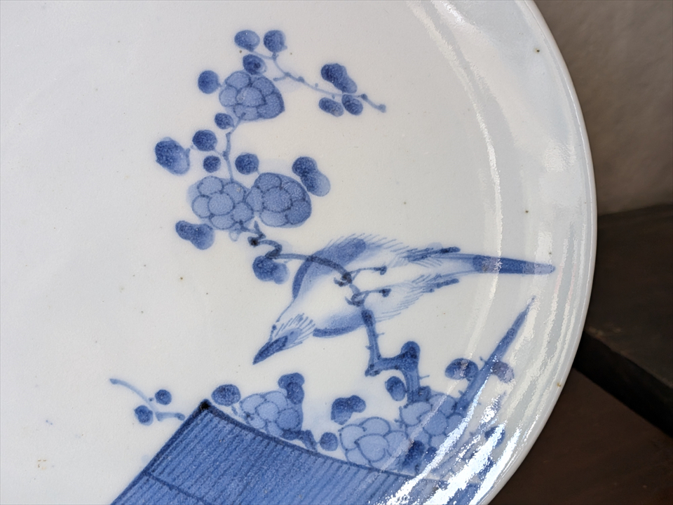 また柔らかな羽毛は、藍九谷が得意とする染付の濃淡と、細かな線描きで描かれています。