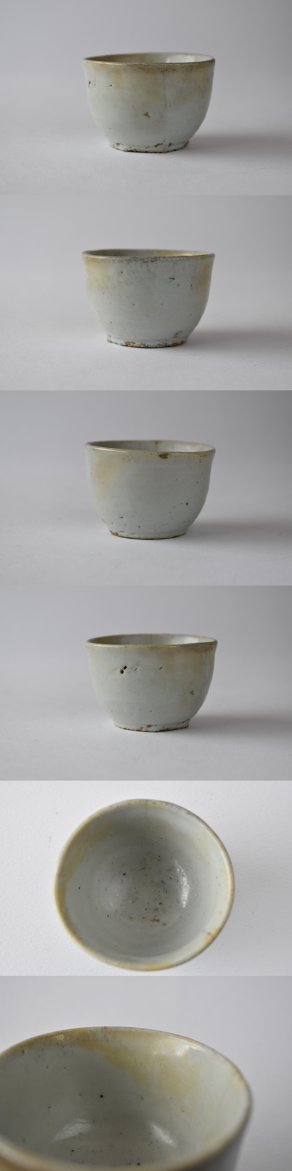 後期の白磁のなかでは少し古いタイプで見込みがフラットではなくアールのついたもので、末期の低いのとは違うやや背の高い筒形に近い白磁をご紹介します。