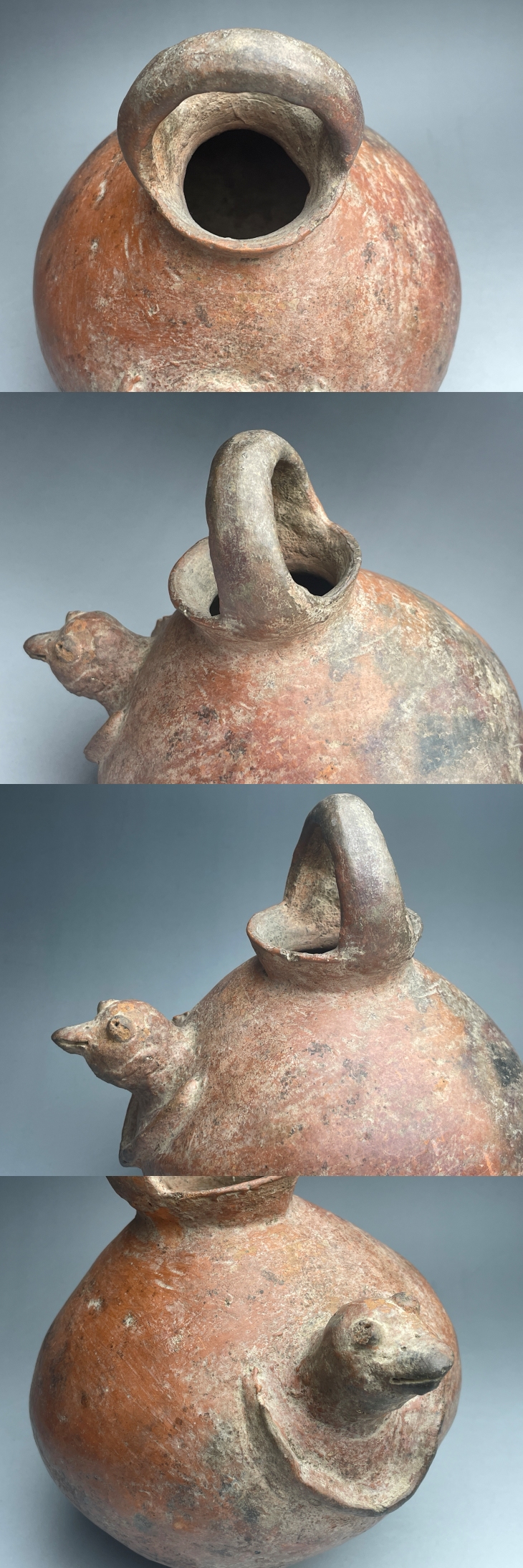 欠け、削げ、ホツなどがありますが、あまり気にならないと思います。ブラックライトでも見ましたが、修理の有無は分かりませんでした。ただし、古い土器ですので、修理の可能性も考えられます。