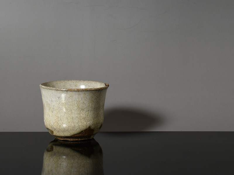 志野とも粉引とも異なる、唐津特有の白の景色を示す酒器は現存数が少なく、白き唐津の中でも、焼成の偶然がここまで豊かに現れた酒盃は稀少です。