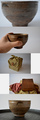 高台は片薄の三日月、兎巾がしっかり立って見事な縮緬皺が波のように出ています。高台際のヘラ使いは轆轤がズレたのかガタガタと段が付いていて面白い景色ですね~。