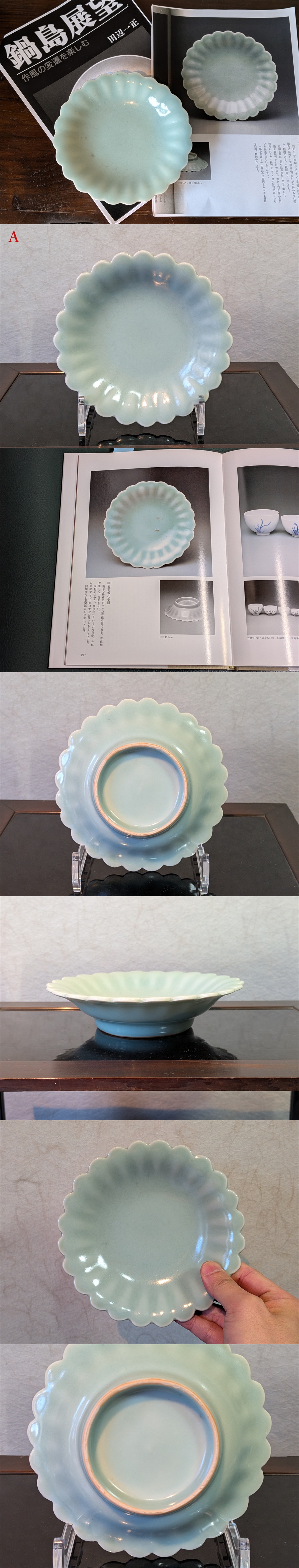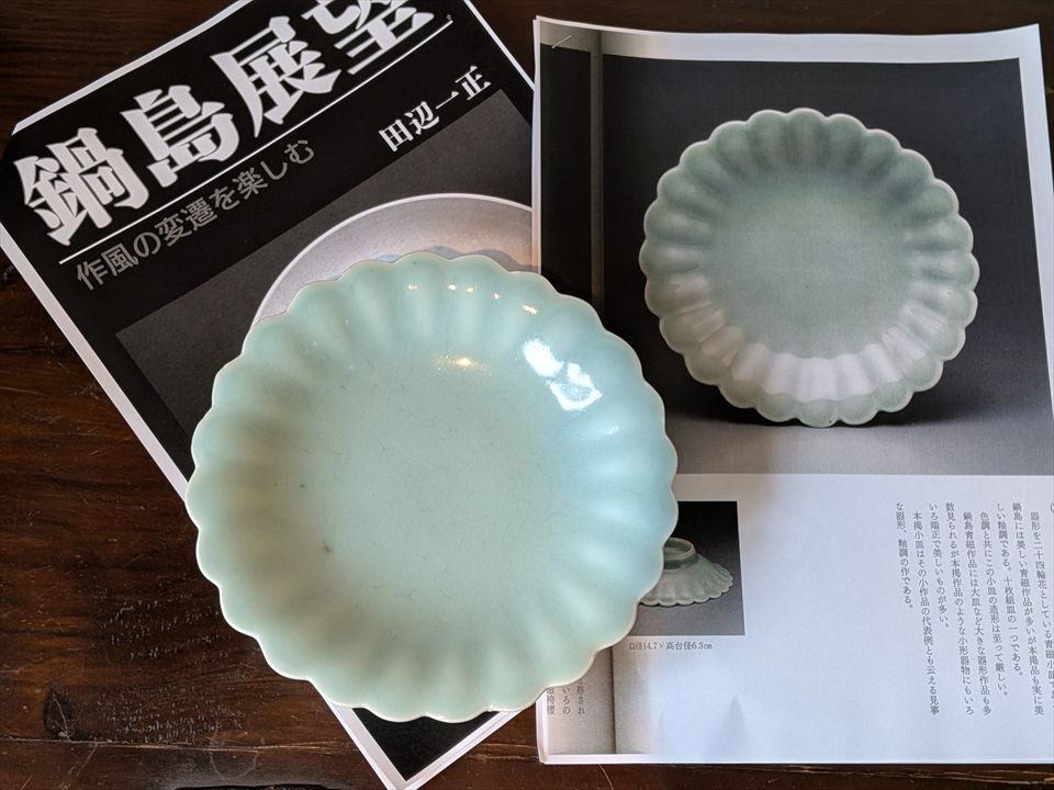 鍋島特有の多層がけによる分厚い青磁釉と、それに負けない優雅な成型も見受けられます。