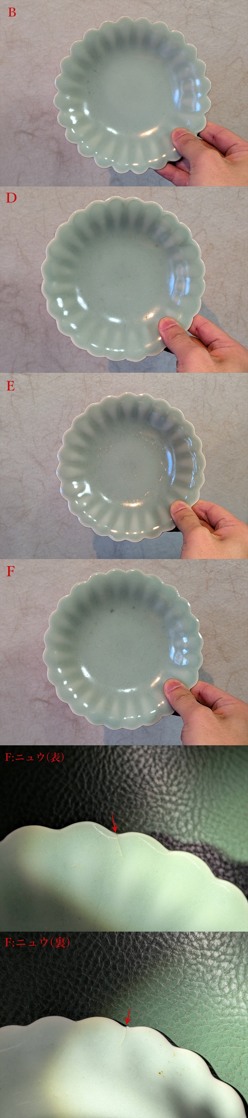(注):Fの縁部にニュウがございます。写真に印を付けましたので、ご確認・了承の上、ご購入下さい。