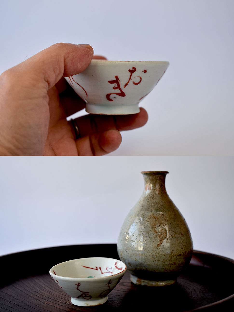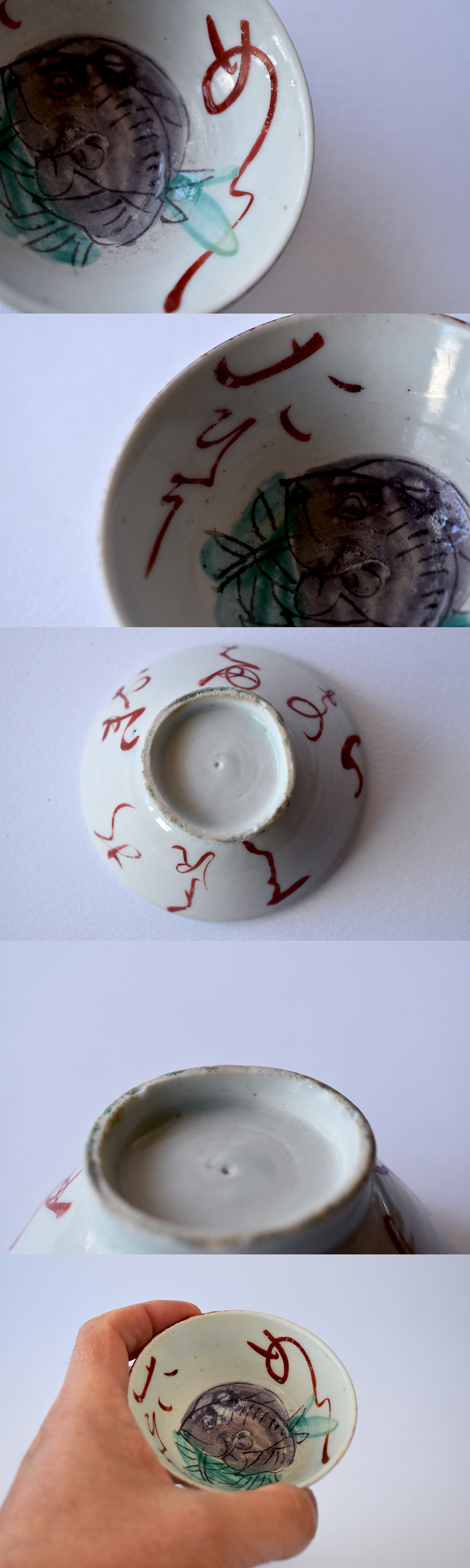 加賀の地、春日山の窯で焼かれて著名になったので伊万里でも盛んに写されたものでしょう。春日山の窯の規模を考えれば今日流通しているこの手の酒盃はほとんどが有田産と考えるのが自然でしょう。実際に土を観察すると伊万里磁器の土味と思われます。