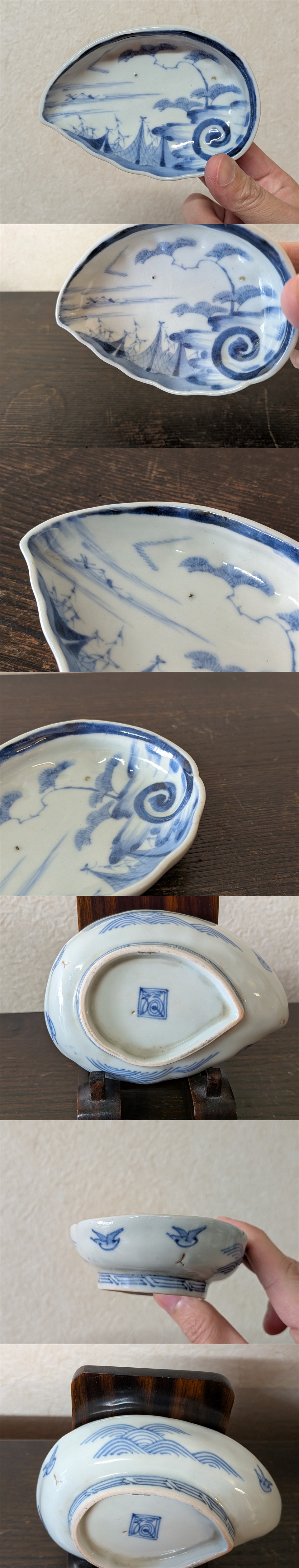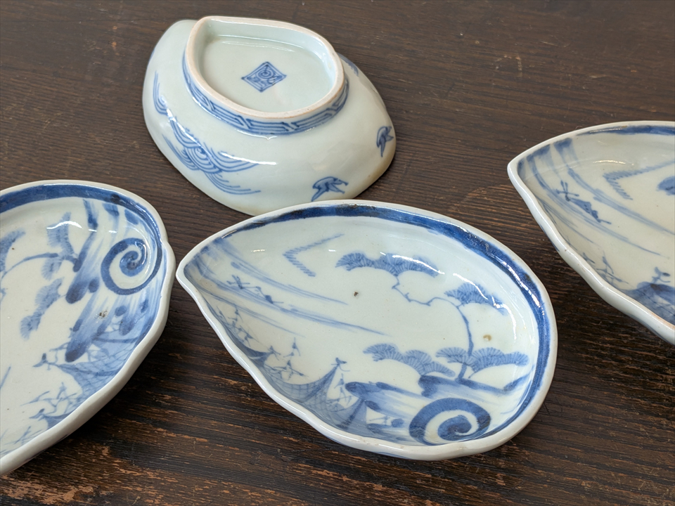 そうした凹凸のある面に、風情のある海辺の絵付けが光ります。