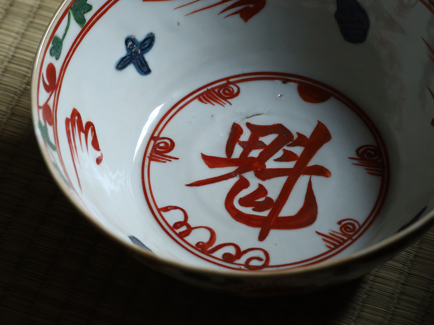 濃やかな上絵付けが冴えわたる魁手の呉須赤絵です。