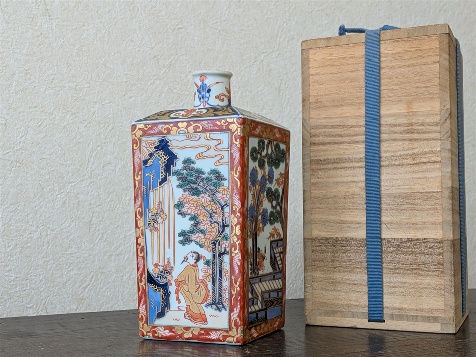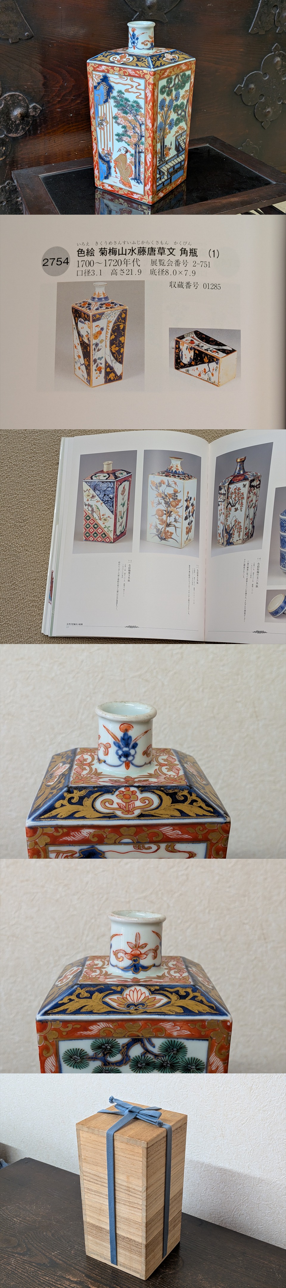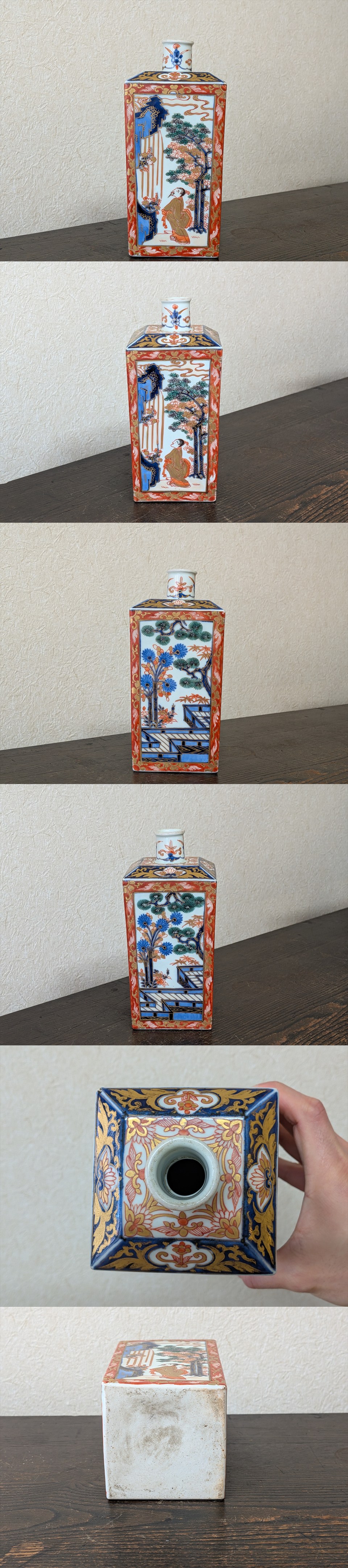 『柴田コレクション』や『古伊万里のすべて』(どちらも佐賀県立九州陶磁文化館)に同時代同型の角瓶が掲載されています。